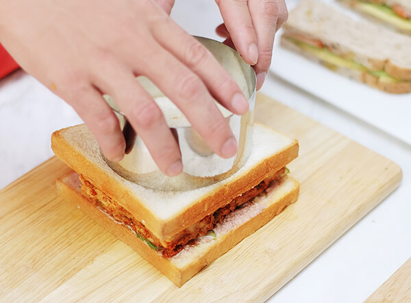 Cuối cùng, bạn có thể tạo khối tròn xinh xinh cho bánh sandwich. Với cách làm sandwich này, bạn không chỉ có một món ăn ngon miệng mà còn đẹp mắt, vô cùng thích hợp cho những buổi dã ngoại.