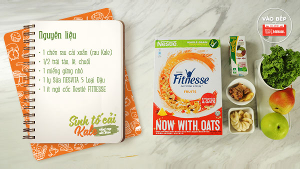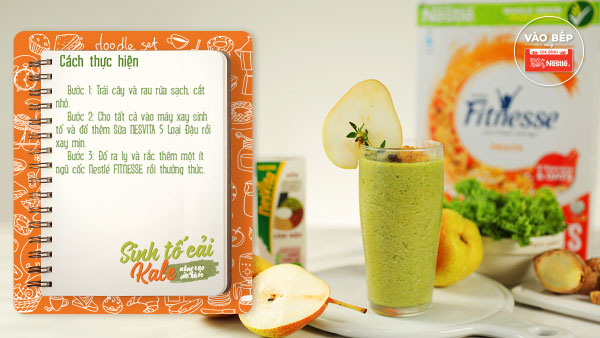 Cải xoăn (Cải Kale) là một trong những thực phẩm được coi là ‘super food’ – siêu thực phẩm. Bởi nó giàu dưỡng chất hơn bất kì loại rau xanh nào và giúp giảm cân vô cùng hiệu quả. Công thức smoothie cải xoăn kết hợp độc đáo cùng sữa NESVITA 5 Loại Đậu thơm mát và ngũ cốc nguyên cám Nestlé FITNESSE bổ dưỡng là lựa chọn hoàn hảo cho nàng bổ sung năng lượng vào bữa xế chiều năng động. Cùng Gia Đình Nestlé thử tài pha chế thức uống detox thanh mát này nha!